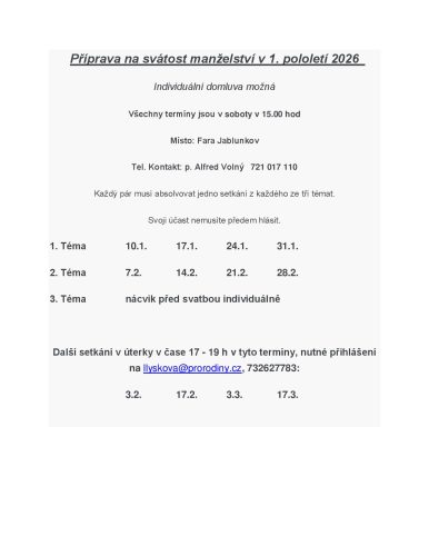 Tel. kontakt: P. Alfred Volný 721 017 110