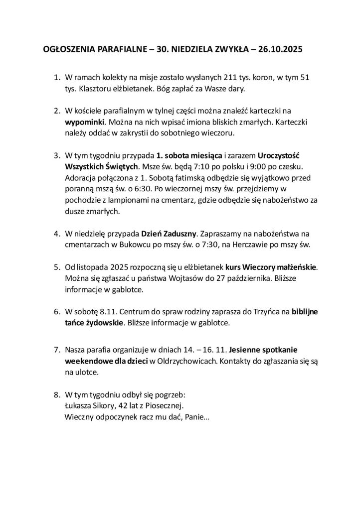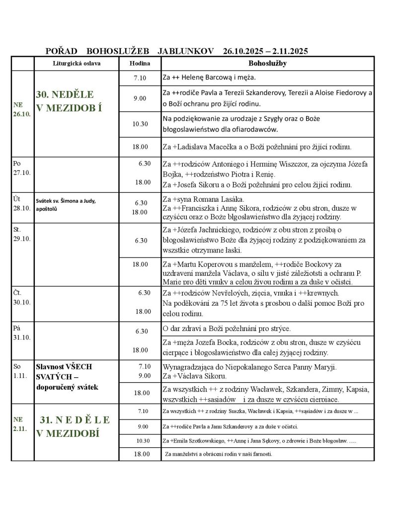 Przedstawiamy Wam, parafianom ofertę wszystkich wspólnot parafii Jablunkov, w których mogą uczestniczyć wszyscy, którzy szukają miejsca na swoje włączenie do parafii, osobiste i wzajemne wsparcie, wzbogacenie lub formę służby dla innych.